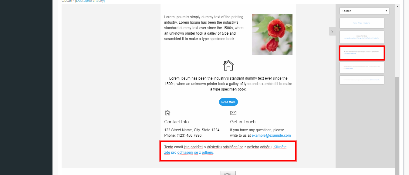 Unsubscribe (odhlášení z odběru) je povinné pro všechny šablony, protože odběratel má právo se kdykoliv z odběru odhlásit.